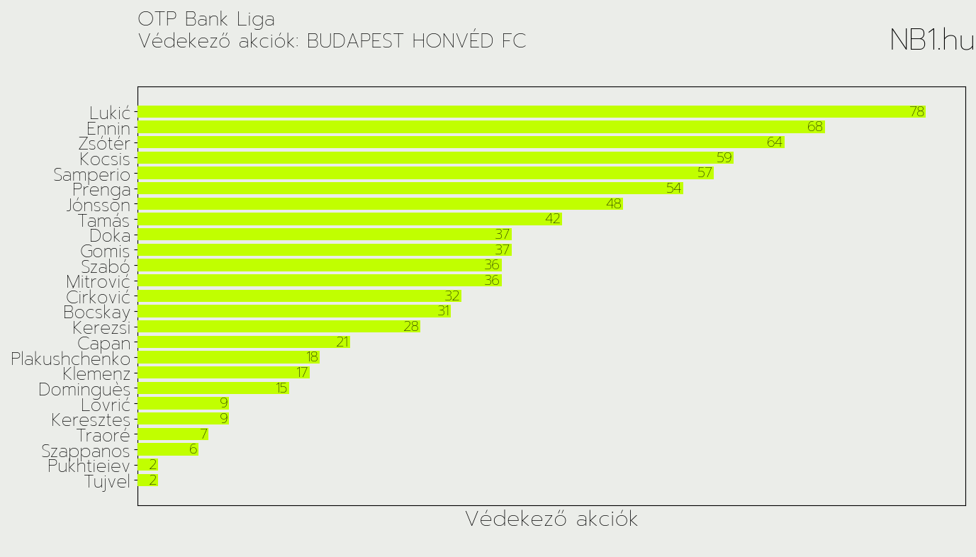 És ebben a szegmensben Lukics kiemelkedő, még akkor is, ha nem feltétlenül a gyorsaságáról híres, viszont a hozzáállására nem lehet panasz, mert toronymagasan ő indította meg a legtöbb védekező (labdaszerzési akciót) a kispestiek közül.
