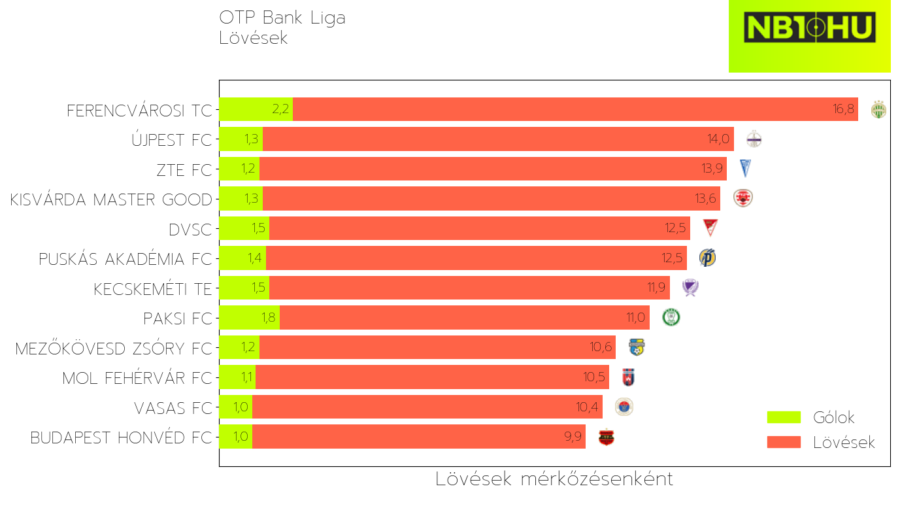 A lövési mutatók alapján ugyanis a szombati vendéglátóké a bajnokság harmadik leggyengébb támadószekciója: a kísérletek számában és a gólokban egyaránt. Ez olyan kvalitású játékosokkal, mint Dárdai vagy Kodro, egészen sokkoló. Szemre ráadásul rég volt annyi élet a Fehérvár offenzív részlegében, mint Felcsúton, így még inkább beszédes, hogy ez is csak 1,0-s xG-re volt elegendő.