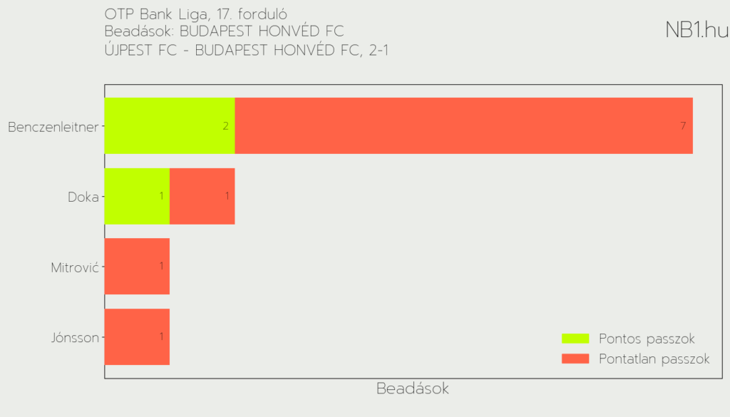 Benczenleitner Barna viszont nemcsak a védekezésből, hanem a támadásokból is kivette a részét. Rengeteg beadása volt, ebből kettő lett pontos. A többi nem társhoz ment, de akik látták a meccset tanúsíthatják, azok között is volt olyan, amikor hazai védőnek kellett mentenie.