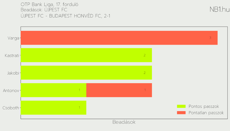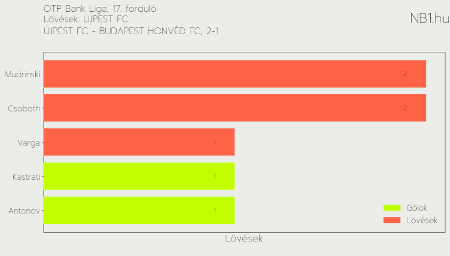 A gyenge őszi szereplés miatt az Újpestnek és a Honvédnak is már majdnem létkérdés volt a győzelem vasárnap este a Szusza Ferenc Stadionban. Ezt pontosan tudták a szurkolók is, akik remek hangulatot teremtettek. És ami szintén jó hír, hogy a sok légiós között magyar tehetségek teljesítményének is örülhettünk a helyszínen. Viszont most megmutatjuk, mit mondanak a számok a teljesítményeikről.