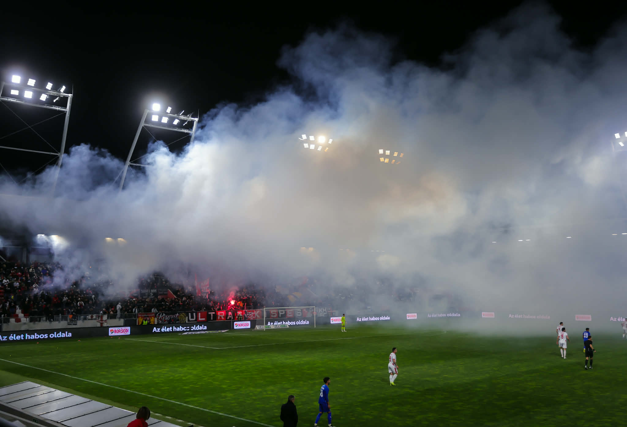 Nem sokat teketóriázott a játékvezető, Csonka Bence, hiszen már a hetedik percben kiosztotta az első sárgát, Pekárnak mutatta fel a lapot. A 16. minutumban jártunk, amikor a hazai szurkolók pirotechnikai bemutatót tartottak, ezért nagy füst lepte el a pályát. A látási viszonyok ekkor nem voltak ideálisak, így Csonka néhány percre félbeszakította az összecsapást. Nagyjából három percig tartó kényszerszünet után folytatódhatott a küzdelem.