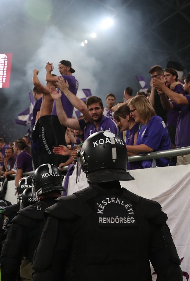 Ráadásul a Puskás edzőjét, Pintér Attilát (52) nem az újpesti ultrák szektorából öntötték le, hanem a Groupama Aréna VIP-részlegéből. Ezért is a lilák a felelősek?