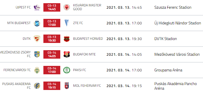 A 26. fordulót a Kisvárdja nyitja meg Újpesten, majd azt MTK-hoz látogat a ZTE. A Szombatot a DVTK és a Honvéd kiesési rangadója zárja. Vasárnapot Pintér Attila nyitja meg a Budafok ellen, majd Szerhij Rebrov összecsap Bognár Györggyel. A kört a Fejér megyei rangadó, a Puskás Akadémia-MOL Fehérvár FC zárja.