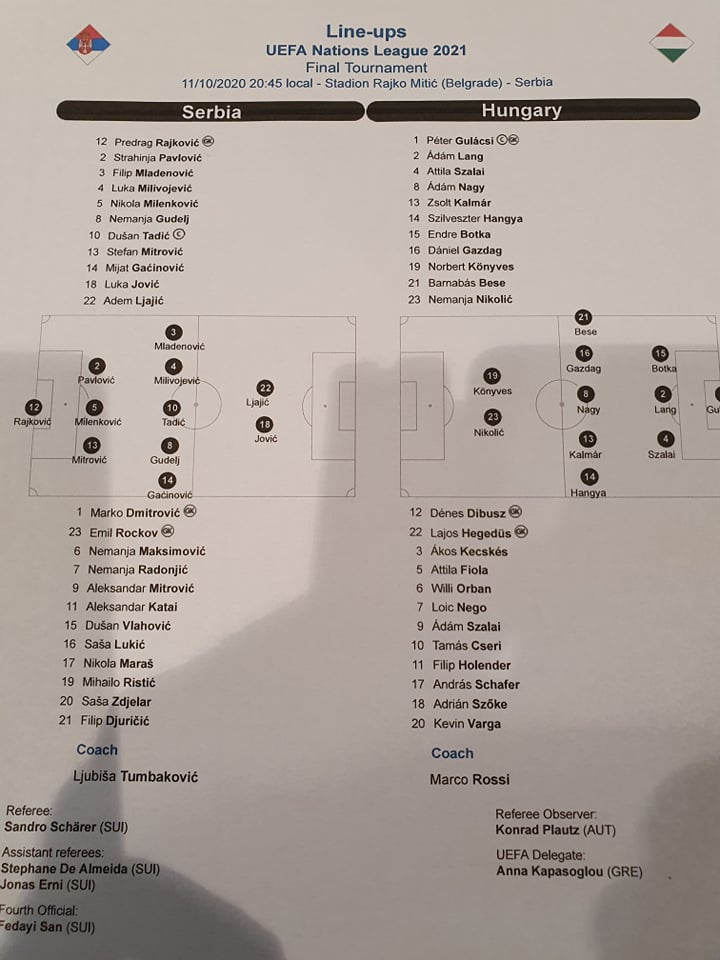 Megvannak a Szerbia-Magyarország találkozó kezdőcsapatai, a mérkőzés 20.45-kor kezdődik.