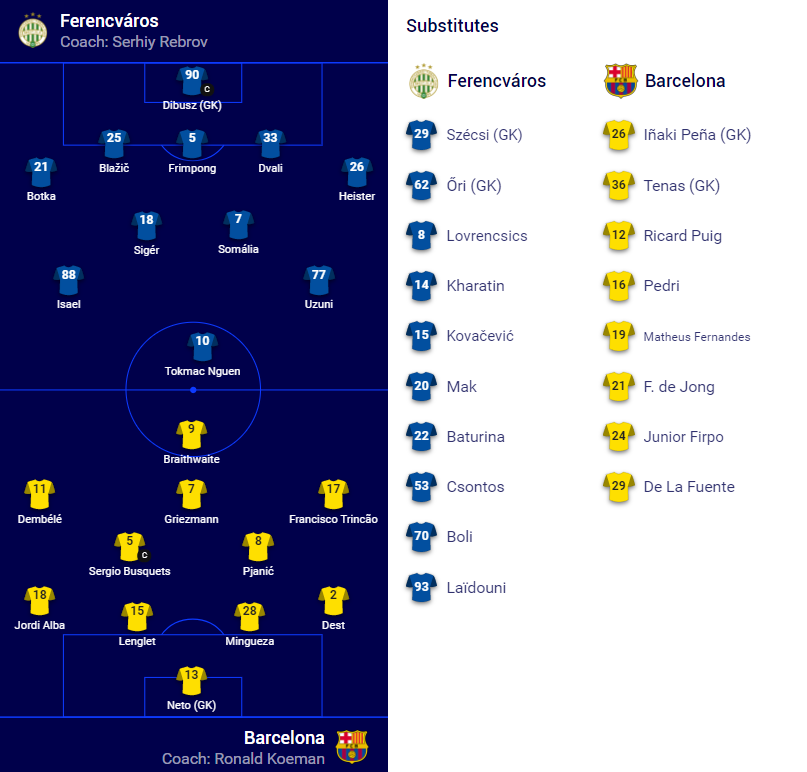 Fradi-Barca: kezdőcsapatok